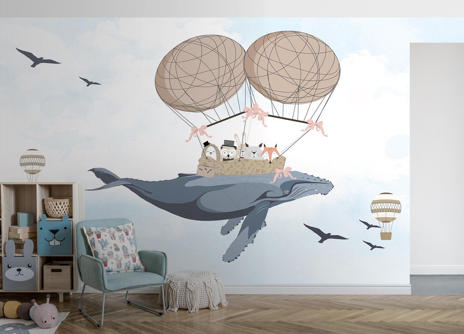 A Bálna lovagok gyerektapéta egy varázslatos légi utazásra hívja a gyerekeket, ahol barátságos állatok együtt szelik az égbolt felhőit. A hatalmas, békés bálna hátán utazó kis társaság a bátorságot, az összetartozást és a kaland örömét jelképezi. A meleg pasztellszínek és a finom vonalvezetés megnyugtató, mégis izgalmas hangulatot teremtenek a gyerekszobában. A lebegő léghajók és madarak mesés, álomszerű világot alkotnak, amely ösztönzi a fantáziát. A kedves karakterek könnyen megszerethetők, így a tapéta gyorsan a szoba központi eleme lesz. Ez a design ideális választás kisebb és nagyobb gyerekek számára egyaránt. A kompozíció segít egy biztonságos, szeretetteljes környezet kialakításában. A részletgazdag illusztrációk hosszú ideig lekötik a gyerekek figyelmét. A Bálna lovagok tapéta tökéletes hátteret ad játékhoz, meséléshez és elalváshoz is. Egy igazán különleges falikép, amely minden nap új kalandokra hív.